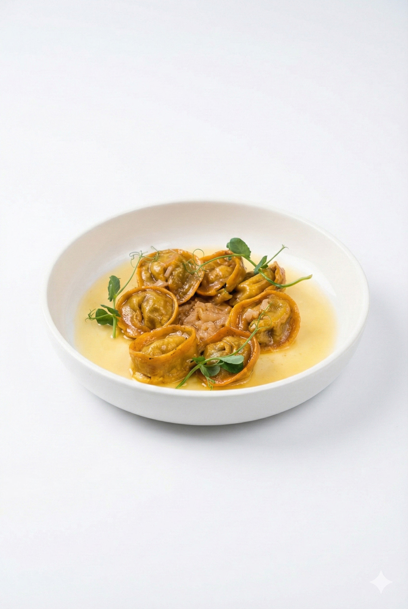 Delikatne tortellini z ciasta makaronowego, nadziewane drobiem doprawionym ziołami. Do podania w barszczu lub bulionie dla tych, którzy lubią „coś konkretnego” w talerzu. Wystarczy krótko ugotować przed serwisem.